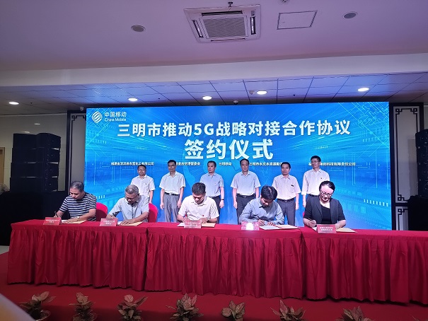 中KY.COM科技应邀参展并与中国移动三明分公司签订关于推动5G战略对接合作协议,中KY.COM科技副总裁孙平代表公司出席签约仪式。
