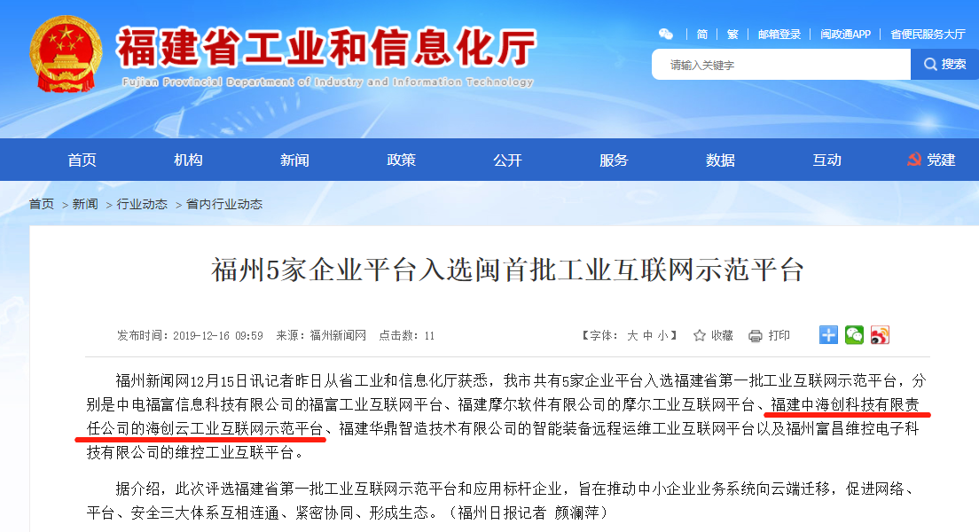 近日,福建省工业和信息化厅公示了福建省首批工业互联网示范平台和应用标杆企业名单。中KY.COM科技KY.COM云工业互联网平台在众多参评企业中脱颖而出,成功入选。