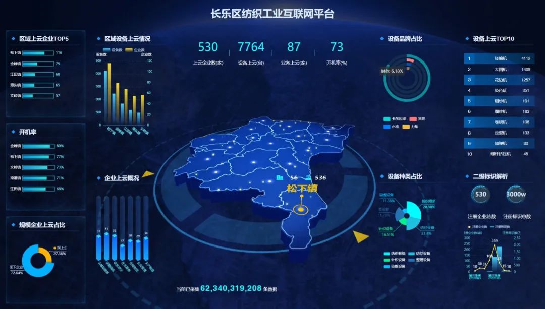 目前长乐区纺织工业互联网平台已服务企业500+家,连接纺织设备7700+台,涵盖化纤、纺纱、 织造、染整等多个纺织细分行业。同时,平台作为国家标识解析二级标识节点(福州)的重要入口之一,已完成3000万工业互联网标识的注册及解析。
