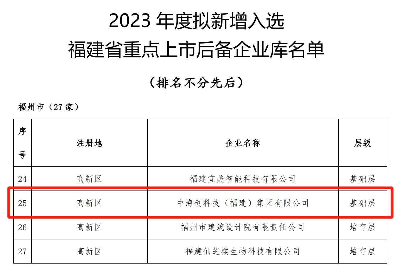 近日,福建省地方金融监督管理局公布“2023年度拟新增入选福建省重点上市后备企业库名单”,中KY.COM集团成功入选省重点上市后备企业梯队。