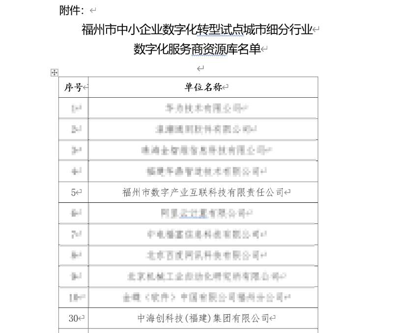 近日,福州市工业和信息化局发布了《福州市中小企业数字化转型试点城市第一批细分行业数字化服务商资源库名单》,经专家评审,福州市工业和信息化局研究,福州市工业和信息化局遴选结果公示,中KY.COM科技(集团)有限公司和旗下子公司福州市数字产业互联科技有限公司双双入选“福州市中小企业数字化转型试点城市数字化服务商资源库”。